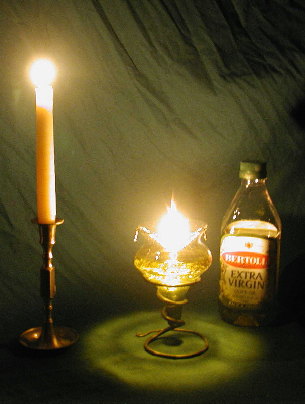 Původně se používaly mořské mušle, kameny s prohlubní, rohy zvířat (cca 15.000 př. n. l.). 2600 př. n. l. Sumeřané vyráběli lampy z alabastru, které tvarem velmi připomínaly mušle. Lampy se plnily zvířecím nebo rostlinným tukem, používal se knot. V Palestině se ručně vyráběné lampy začaly dělat před rokem 2000 př. n. l. Používal se olivový olej, sezamový olej, ořechový olej, rybí olej, palmový olej a jiné rostlinné oleje. V Indii se používalo máslo ghee, ze kterého byla vyvařena voda. Ve starověké Persii se používal jako náplň petrolej, který volně tryskal ze země.